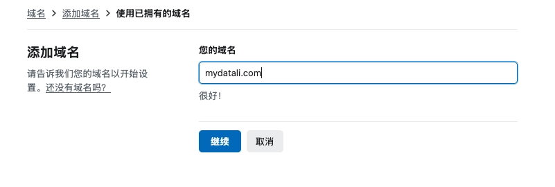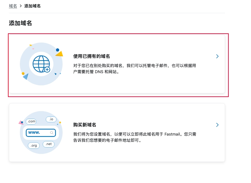 这里我们选择 使用已拥有域名