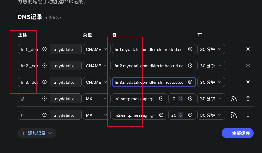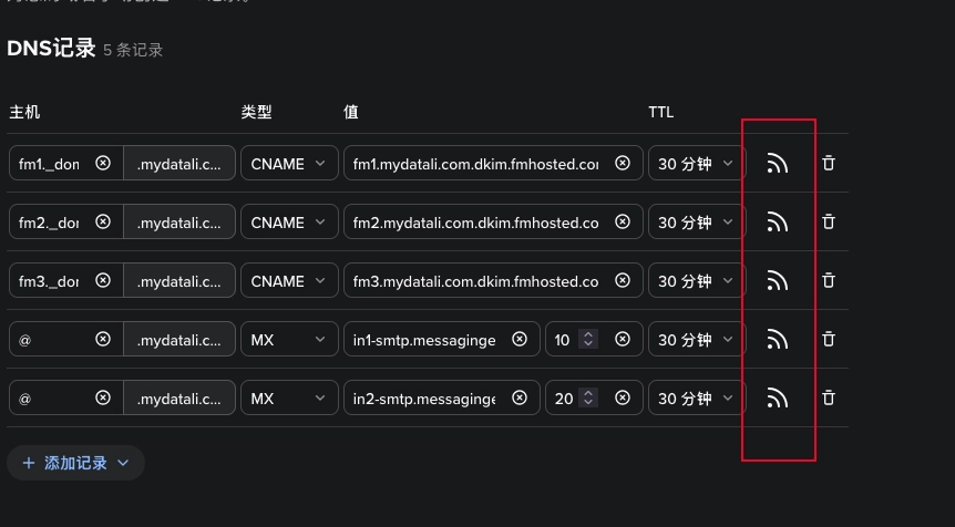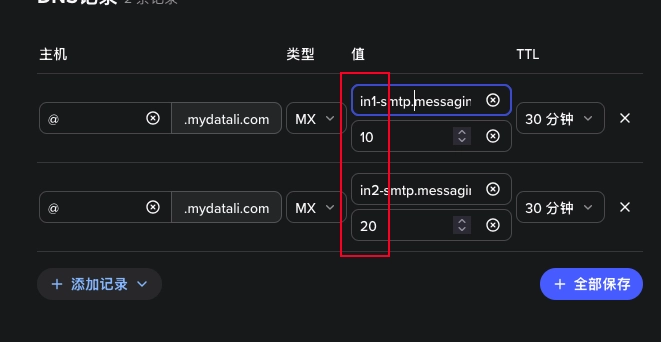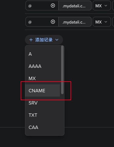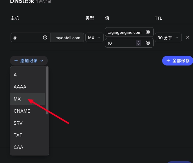 然后在添加一条 MX 记录