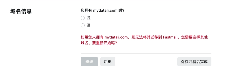 这样的话,可以接收这个域名的所有电子邮件,然后选择继续