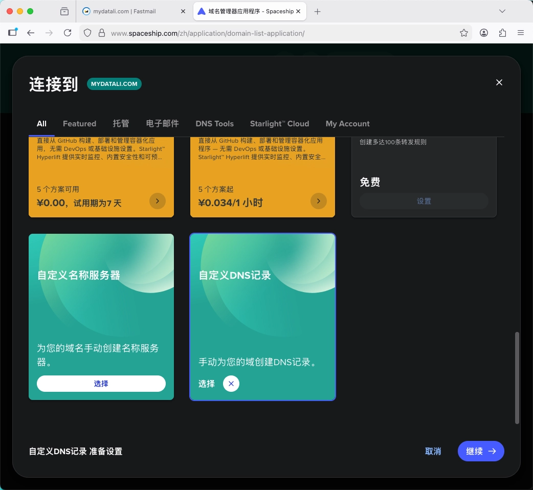 因为我的这个域名注册在 Spaceship ,没有修改过其他的 DNS 服务器,在此以 Spaceship 作为演示