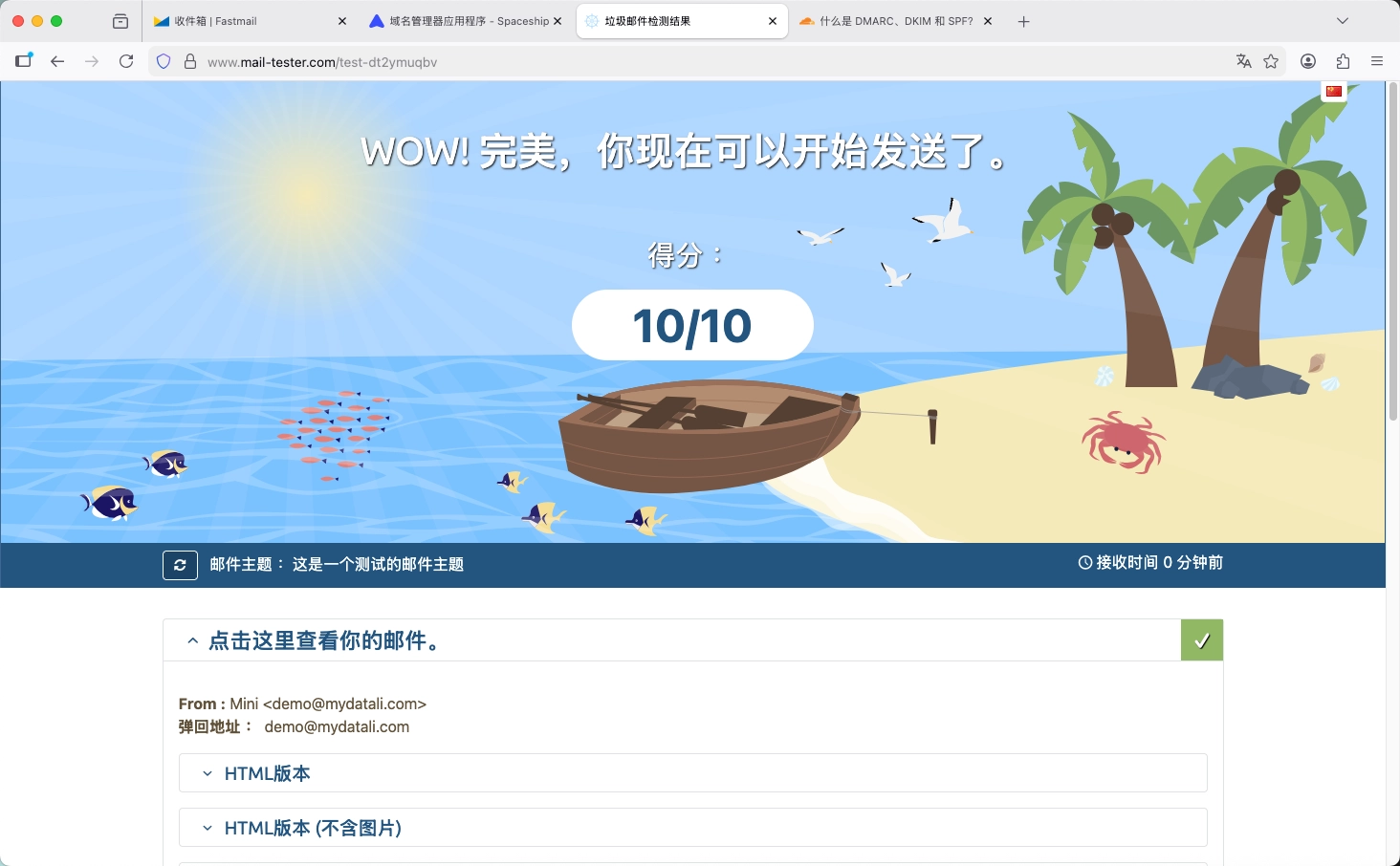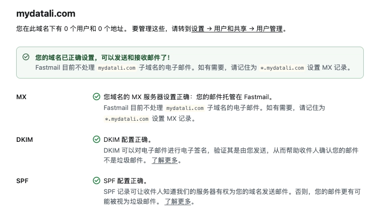 然后我们回到 Fastmail 检查一下是否成功