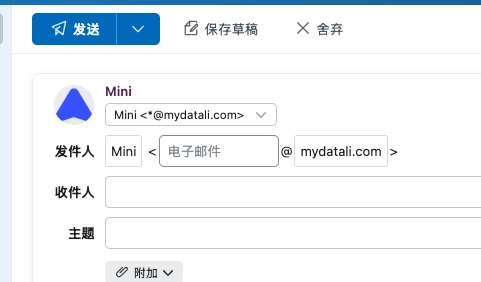 在发件人这里,可以选择通过域名邮箱进行发件