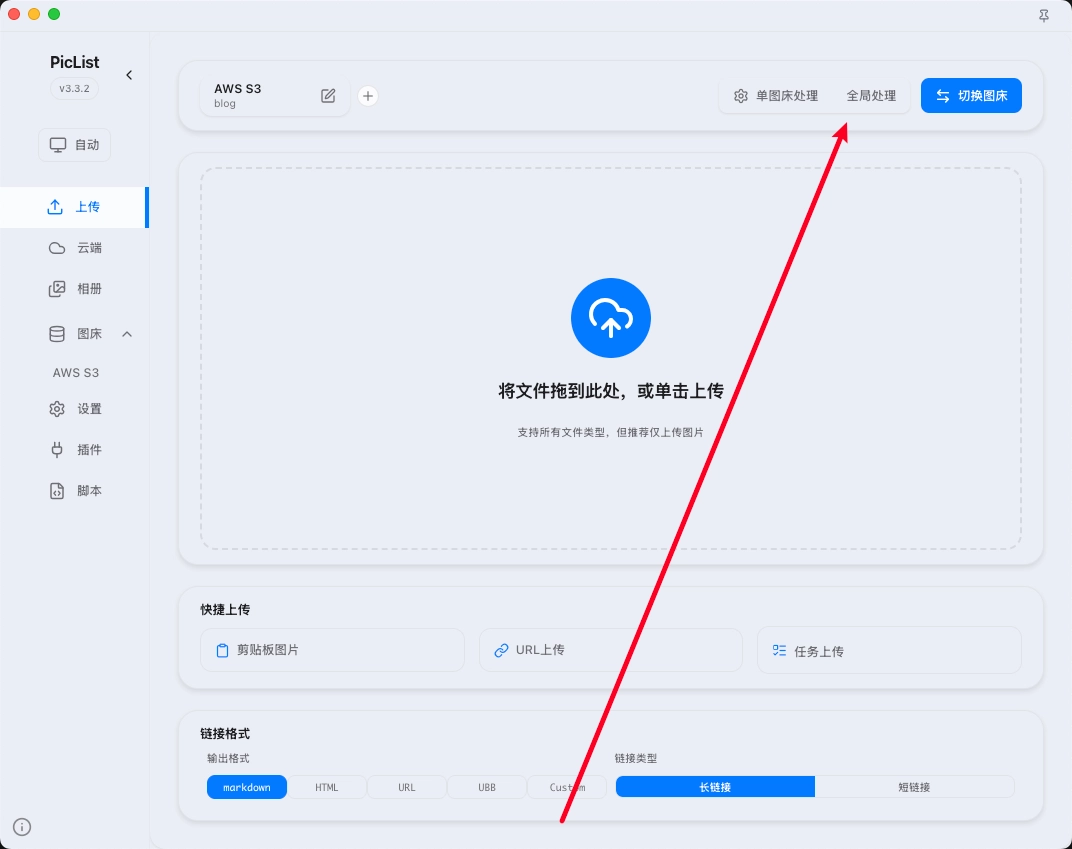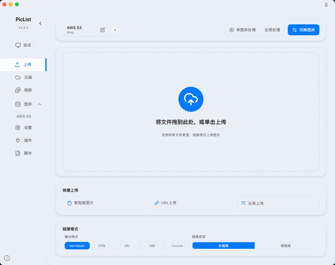 PicList 支持多种上传方式,比如拖动、获取剪切板图片等等